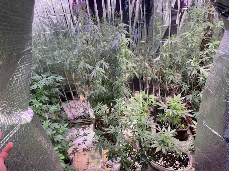 Prilikom pretresa, u prizemlju kuće je pronađena improvizirana labaratorij namjenjen za uzgajanje indijske konoplje s opremljenom rasvjetom i sustavom zagrijavanja/hlađenja potrebna za kontrolirani uzgoj. U navedenom labaratoriju, u boksovima za uzgoj indijske konoplje su pronađene 53 uzgojene stabljike u različitim fazama rasta visine od 10-120 cm koje svojim izgledom asociraju na indijsku konoplju, posađene u saksijama, te 42 sadnice u posudi sa vodom koje svojim izgledom asociraju na indijsku konoplju.
